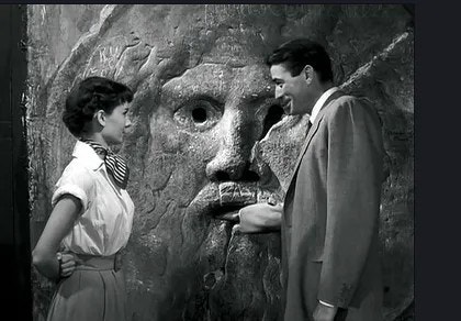 1) 그 유명한 진실의 입 장면입니다. 이 장면에 관해 재미있는 일화가 있는데, 사실 이때그레고리 펙은 와일러 감독과 짜고 오드리 헵번에게 장난을 치기로 했습니다. 즉, 저 장면에서 나온 오드리 헵번의 놀란 비명과 리액션은 연기가 아니라 진짜였던 것입니다.