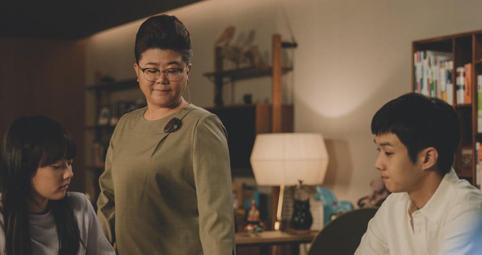 어느 날, 기우의 명문대 친구 ’ 민혁‘(박서준)이 미국 유학을 가는 동안 그의 과외 아르바이트 자리를 넘겨줍니다. 기우는 ’ 박사장‘(이선균) 가족의 딸 ’ 박다혜‘(정지소)의 영어 과외 선생님으로 들어가기 위해 위조된 대학 재학증명서를 만들고, 면접에서 박사장 아내 ’ 연교‘(조여정)의 신임을 얻어 채용됩니다.