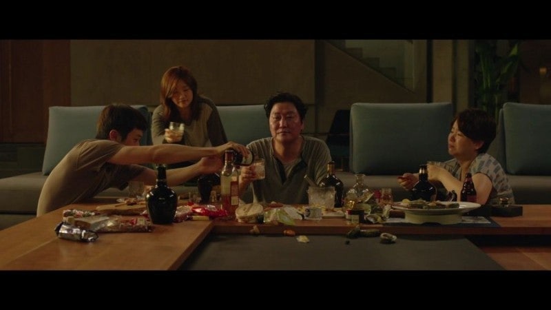 7) 기택네 가족이 몰래 양주파티를 벌이는 씬에서 제작진들은 푸아그라와 통조림 등 가격대가 높은 다양한 안주를 준비했는데, 사전에 합의한 것도 아닌데 기택네 가족들은 촬영 시 모두들 감자칩과 땅콩만 먹었다고 합니다.