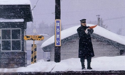영화는 평생을 일본 홋카이도의 막다른 종착역인 호로마이역을 지켜온 역장 ‘사토 오토마츠‘(다카쿠라 켄)가 정년퇴임을 앞둔 겨울날의 이야기를 담고 있습니다. 오토마츠는 갓 태어난 딸 유키코를 병으로 잃었을 때도, 아내인 ‘시즈에‘(오타케 시노부)가 병원에서 숨을 거둘 때도 깃발을 흔들며 열차를 맞이하고 보내야 했던 고지식할 정도로 투철한 직업의식의 소유자입니다.