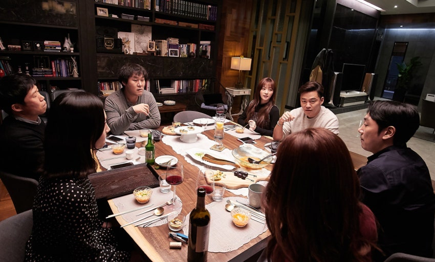 일곱 명의 배우들이 보여주는 앙상블은 가히 압도적이라 할 수 있습니다. 가부장적이고 보수적인 태수(유해진)와 억눌린 자아를 지닌 수현(염정아)의 관계는 한국 사회의 단면을 적나라하게 투영하며, 준모(이서진)와 세경(송하윤) 부부의 파국은 화려한 겉모습 뒤에 숨겨진 천박한 본능을 폭로합니다. 특히 영배(윤경호)라는 인물을 통해 던지는 소수자에 대한 우리 사회의 비겁한 시선은 코미디로 출발한 영화가 도달하는 가장 묵직한 사회적 메시지이기도 합니다. 이들은 서로를 가장 잘 안다고 자부하지만, 실상은 좁은 식탁에 둘러앉아 서로의 실체를 전혀 파악하지 못하는 '완벽한 타인'임을 연기력을 통해 완벽히 설득해 냅니다.