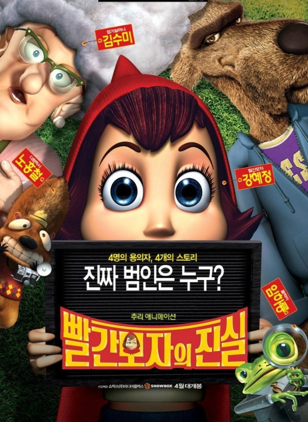 2005년 미국에서 개봉한 영화 <빨간 모자의 진실(Hoodwinked!)>은 고전 동화 '빨간 모자'를 현대적인 수사물 형식으로 재구성한 3D 애니메이션입니다. 코리 에드워즈, 토드 에드워즈, 토니 리치 감독이 공동으로 메가폰을 잡았으며, 기존의 동화적 문법을 완전히 뒤튼 기발한 상상력으로 큰 주목을 받았습니다. 할리우드 원작에서는 앤 해서웨이(빨간 모자)와 글렌 클로즈(할머니) 등이 목소리 출연을 맡았으나, 한국에서는 2006년 개봉 당시 강혜정(빨간 모자), 김수미(할머니), 노홍철(다람이), 임하룡(폴짝이) 등 캐릭터의 개성과 완벽히 일치하는 화려한 연예인 더빙 라인업을 구축하여 원작 못지않은 큰 인기를 누렸습니다.