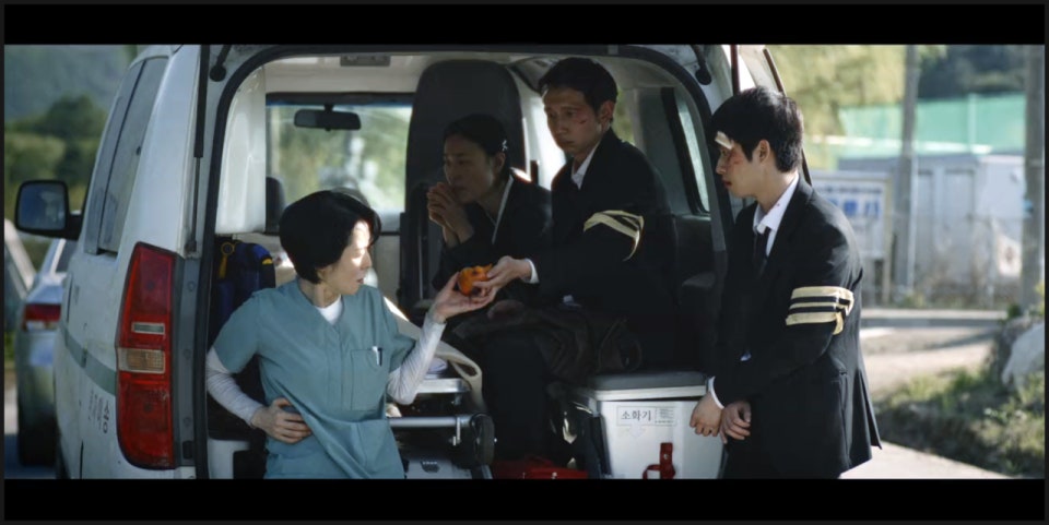선영, 일회, 효연, 동호 네 사람은 감을 나눠 먹는 장면에서 서로 어색하게, 그러나 완전히 끊어지지는 않은 채 마주 앉습니다. “떫어?”라고 묻는 대사와 함께, 높은 당도를 뜻하는 ‘고당도’와 죽음(고인)에 도달한다는 의미가 겹치며, 달콤하지만 떫은 맛이 남는 가족 관계와 이들의 선택을 상징적으로 나타내며 영화는 마무리합니다.