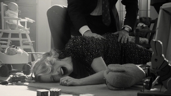 라쳇의 시신이 발견된 직후, 포와로가 사건 현장을 처음 조사하는 장면은 독특하게도 천장에서 아래를 수직으로 내려다보는 하이 앵글로 촬영되었습니다. 좁은 객실 내부를 벽면 없이 위에서 조감도처럼 보여주는 이 연출은, 사건의 단서들을 객관적으로 배치하여 관객이 탐정과 함께 단서를 수집하는 느낌을 줍니다. 동시에 좁은 공간에 갇힌 인물들의 답답함과 기괴한 사건의 분위기를 강조하며 미스터리한 긴장감을 극대화했습니다.