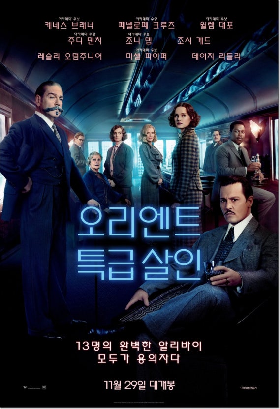 배우들의 연기 또한 이 영화를 명작의 반열에 올리는 핵심 요소입니다. 감독과 주연을 동시에 맡은 케네스 브래너는 포와로라는 탐정을 단순히 똑똑한 괴짜가 아니라, 정의와 불의 사이에서 고뇌하는 입체적인 인물로 그려냈습니다. 여기에 조니 뎁, 미셸 파이퍼, 주디 덴치 같은 대배우들이 짧은 등장만으로도 각자의 슬픔과 비밀을 깊이 있게 연기하며 극의 무게감을 잡아줍니다. 이들은 단순한 범죄자가 아니라 과거의 비극으로 인해 상처 입은 피해자들이라는 점을 관객들이 마음으로 느끼게 만들며, 영화 후반부의 감동을 더욱 진하게 만듭니다.