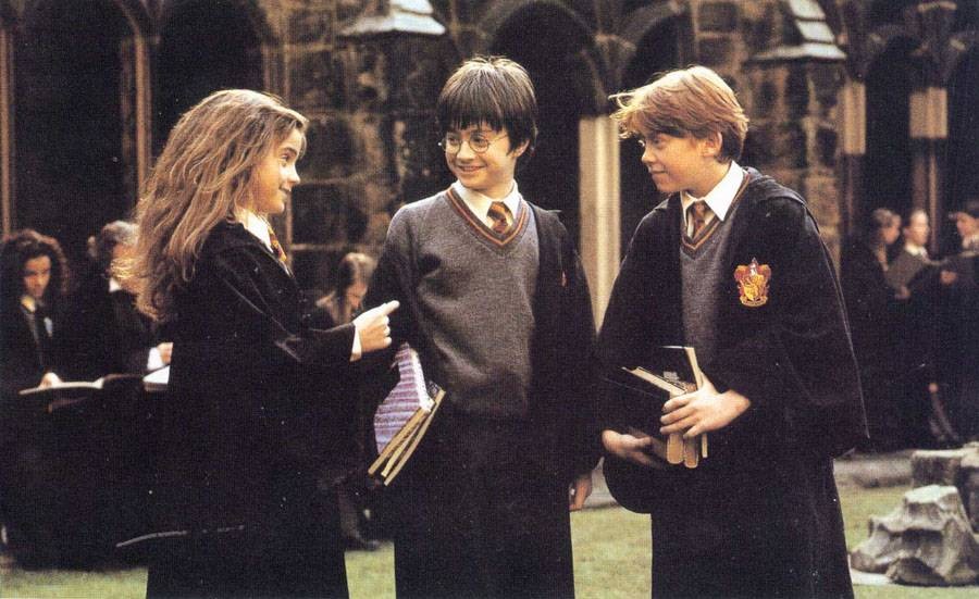호그와트 입학식 날, 해리는 호그와트 급행열차를 타기 위해 9와 4분의 3 승강장 위치를 찾다가 위즐리 가문의 엄마 몰리 위즐리가 호그와트로 가려는 퍼시 위즐리, 프레드 위즐리, 조지 위즐리, ‘론 위즐리‘(루퍼트 그린트)를 데리고 승강장으로 가는 것을 보게 됩니다. 그들이 승강장으로 들어가는 모습을 보고 있던 해리는 몰리가 가르쳐 주는 대로 무사히 승강장 안에 들어오는 데 성공하고 기차에 탑승합니다. 해리는 론과 통성명을 하고 간식 수레에 있는 모든 종류의 간식을 조금씩 전부 사서 론과 나눠먹습니다. 이런 와중에 또 다른 친구 ‘헤르미온느 그레인저‘(엠마 왓슨)와도 첫 만남을 하게 됩니다. 또 말포이를 다시 만나게 되나, 이때 약간의 소동으로 사이가 틀어지게 됩니다.
